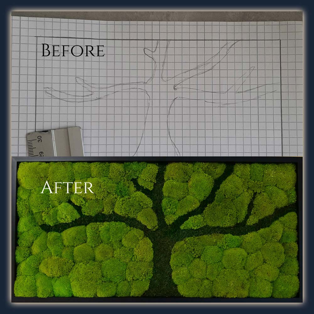 Damit Du eine bessere Vorstellung bekommst, visualisieren wir Deine Projekte gern für Dich, so siehst du Dein zukünftiges Moosbild bereits digital an Deiner Wand hängen.